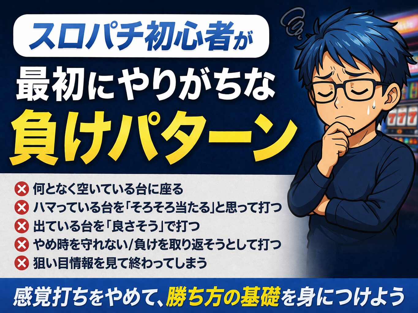 スロパチ初心者が最初にやりがちな負けパターンは、主にこの7つです。