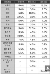 ライバルモードがモノクロ波多野なら、シナリオ振り分けは最強のB2か艇王が選択されます。AT開始時の画面選択率は、モノクロ波多野が80%、波多野が12.5%、その他…って感じです。