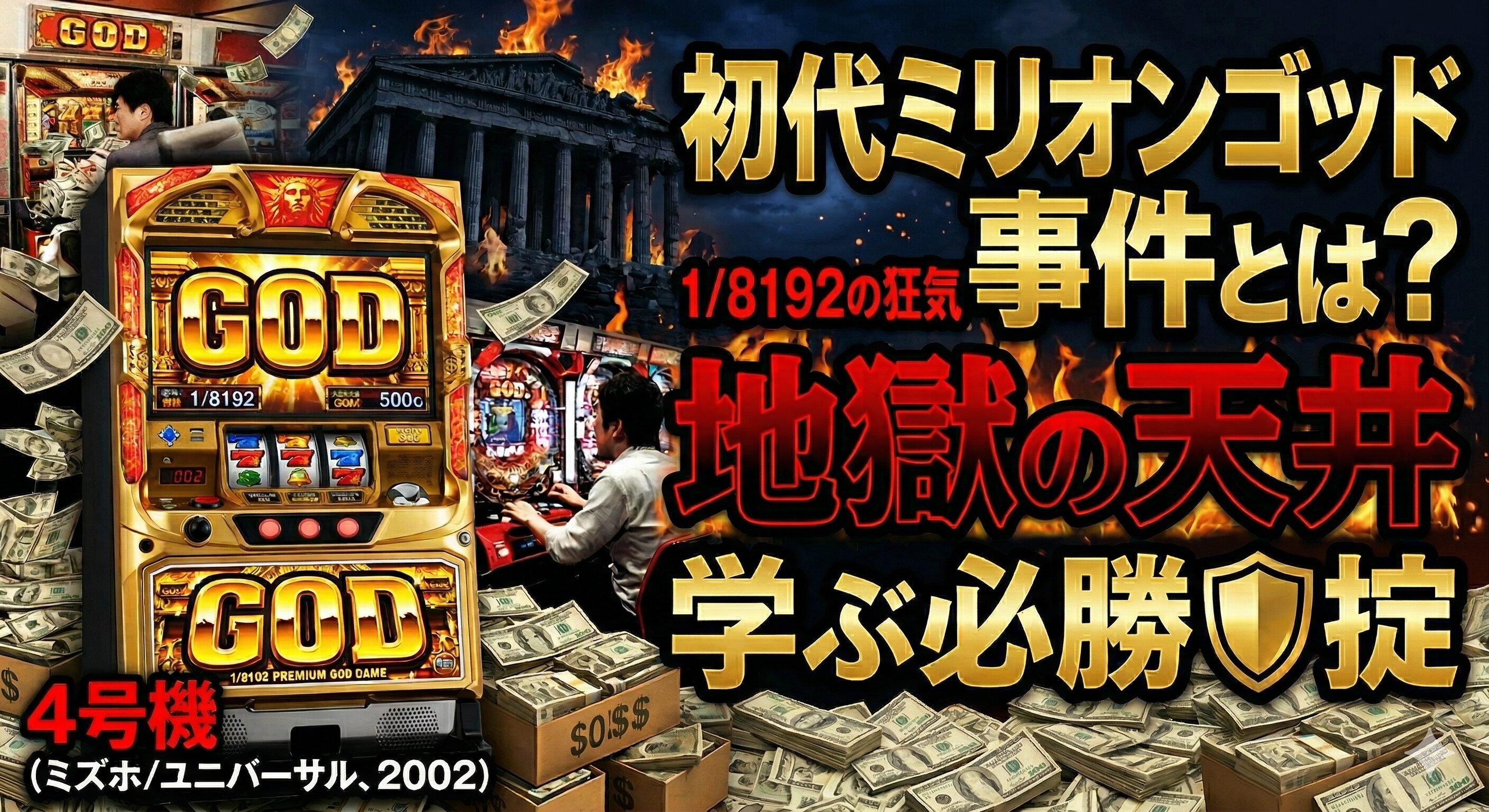 この記事では、「ミリオンゴッド事件とは一体何だったのか?」「当時の天井仕様がいかに凶悪だったのか?」というスロット史に残る真実を紐解きます。